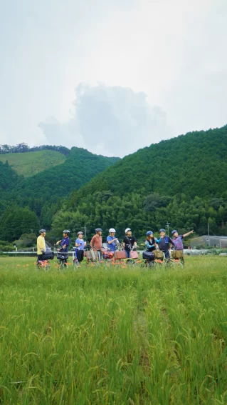 朝の1時間で田んぼ沿いを走り、歴史的なスポットを巡りながら、田園風景を眺めつつ三原米のおむすびセットを味わう朝食をお楽しみいただけます。